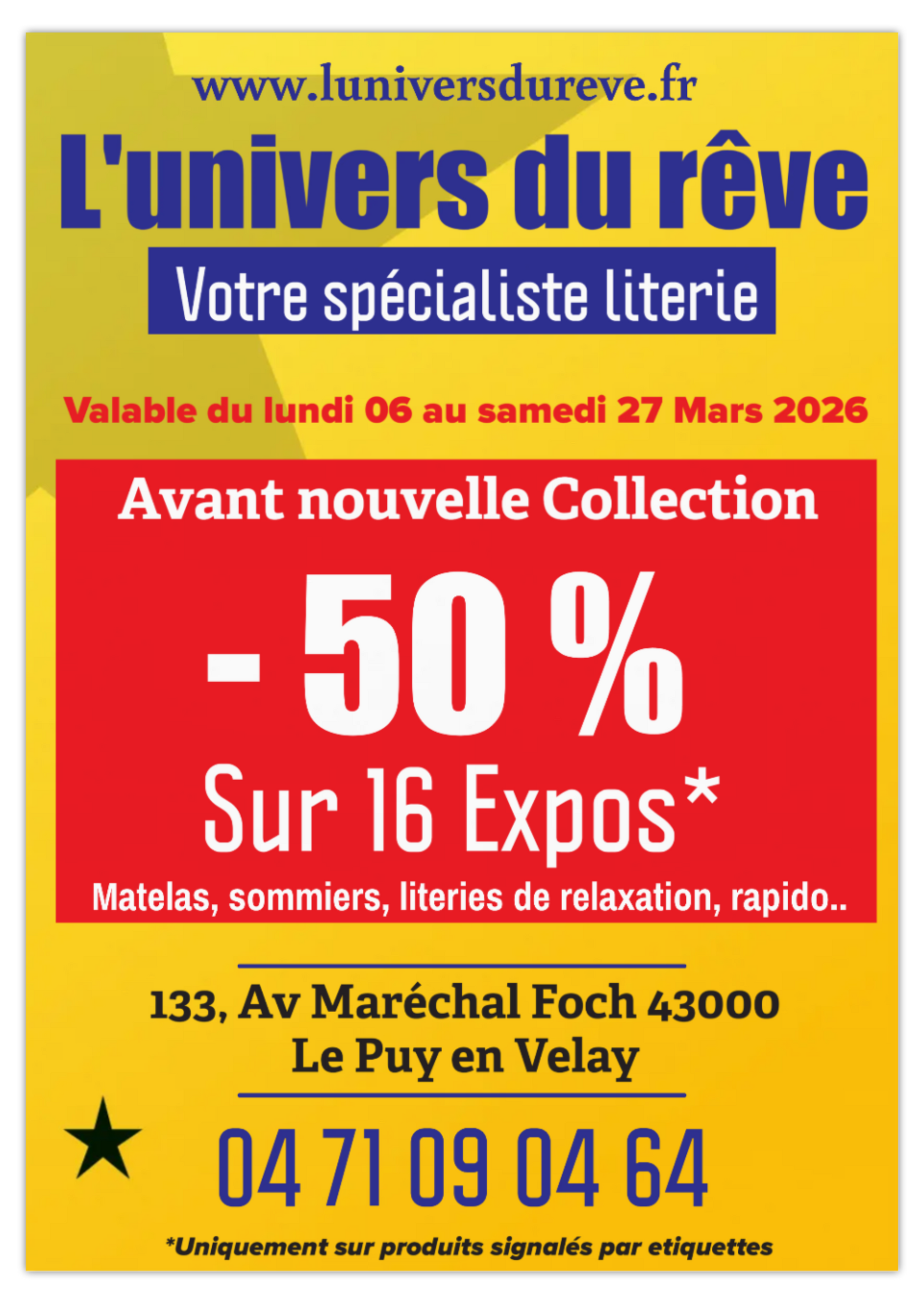 Le magasin de literie L'Univers du Rêve vous accueille chaleureusement au Puy-en-Velay, dans le département de la Haute-Loire (43).